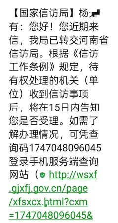 就上述问题,反映人向上级写了几十封信反映情况,转回到当地处理无果。2025年4月27日,反映人向国家信访部门提交书面反映材料,之后收到了受理短信(见短信截图),但目前没有任何有权处理单位与反映人联系,也未出具任何处理意见或进展告知,而是冒充反映人在信访告知书和办结书上签字。根据《信访工作条例》第三十四条“对本条例第三十一条第六项规定的信访事项,应当自受理之日起60日内办结;情况复杂的,经本机关、单位负责人批准,可以适当延长办理期限,但延长期限不得超过30日,并告知信访人延期理由”的规定,相关单位未在法定时限内办结信访事项,也未告知延期理由,涉嫌违反信访工作法定程序。